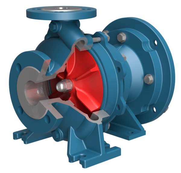 משאבות צנטריפוגליות, אטם מכאני עם מאיץ VORTEX חצי פתוח.