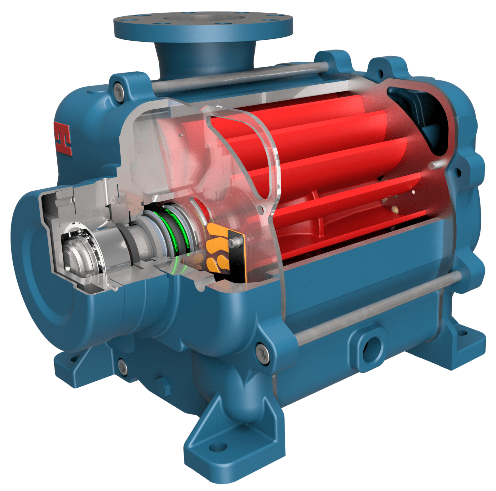 בית מאיץ מרכזי עם סעפות יניקה ופריקה משולבות עם מידות קומפקטיות כלליות. תכונה זו מפחיתה את רכיבי המשאבה ומגבירה את חוזקה. חיסכון משמעותי בזמן ובעלויות התחזוקה וההרכבה.