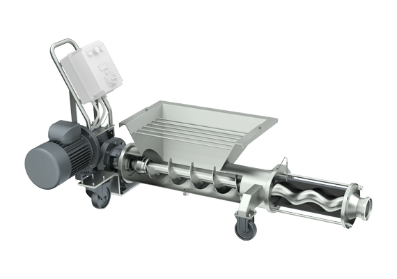מבנה: המשאבה מצוידת בפתח הזנה רחב (Hopper) עם ציר חלזוני המדחוס את החומר ישירות אל הסטטור והרוטור.